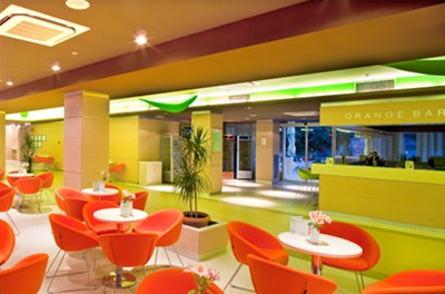 Orange bar – aperitif bar containing a wide selection of drinks and cocktails, the hotel lobby with a seating capacity of 180 seats, spacious and partly roofed terrace with 350 sitting places overlooking the sea and pine-wood