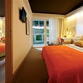 2 double rooms each with two beds or french size bed and couch / extra bed (4 - 6 persons). Ideal for large family holidays or groups of friends. All rooms with connecting balcony, park or sea side. Part of them with children's platform beds in one room. Extra bed suitable for children under the age of 12. Room size: 40 m2 (park side), 43 m2 (sea side).