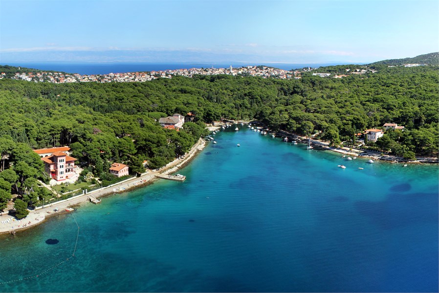 One of the most beautiful coves on the island of Losinj is certainly Čikat cove. The unique beauty of the Cikat park is completed by aleppo pine forest that is planted in the late 19th century by efforts of famous Losinj naturalist and patriot Ambrose Haracic. Cikat is also a beautiful beach with its famous sandy beach suitable for children. Today, apart from a pine forest, which has replaced former olive groves, Cikat is adorned by historical villas of Austrian nobility, which have been converted into hotels and residences, among most famous villa Caroline, villa Diana, villa Hortensia, villa Saborka and Hotels Bellevue, Helios, Alhambra and Kredo. Cikat is a favorite sports destination and offers, water sports like waterpolo, sailing, windsurfing school and diving school tennis and soccer club. Through the forest-park there are several attractive marked promenades and near the sandy beach there is children playground with mini golf. On the cape Anuncijata there is a Church of the Blessed Virgin Mary built in 1858th year. This is a traditional votive shrine of Losinj seaman.